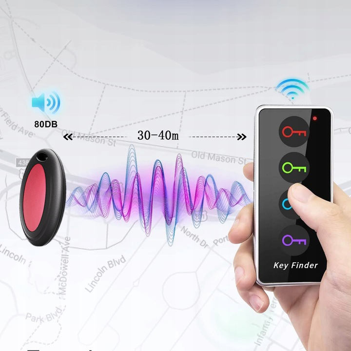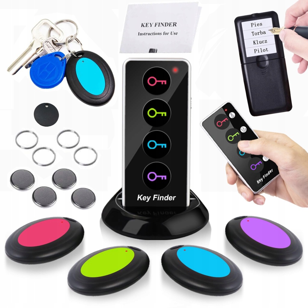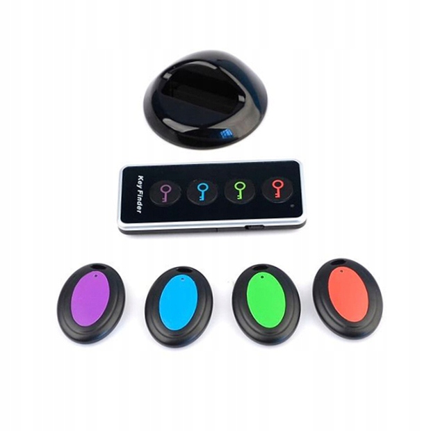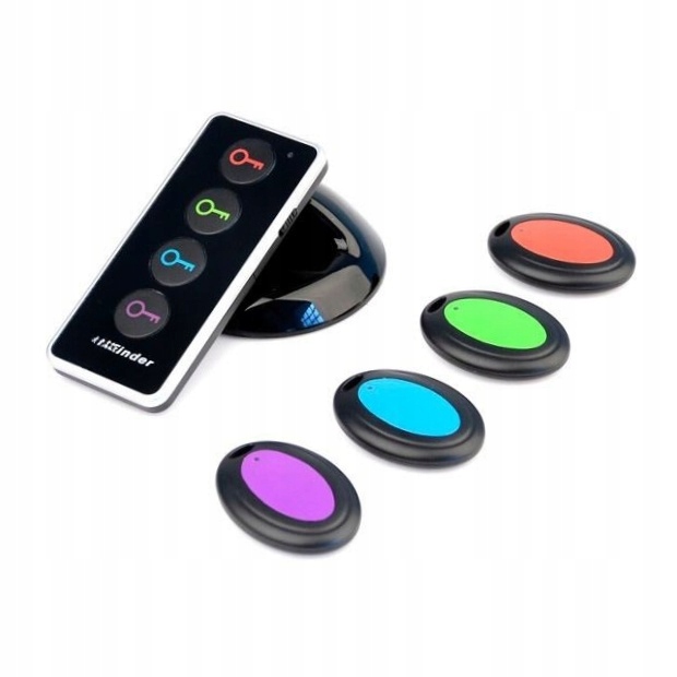 - Gdy zgubisz przedmiot, naciskasz odpowiedni przycisk na pilocie (każdy kolor odpowiada jednemu brelokowi).