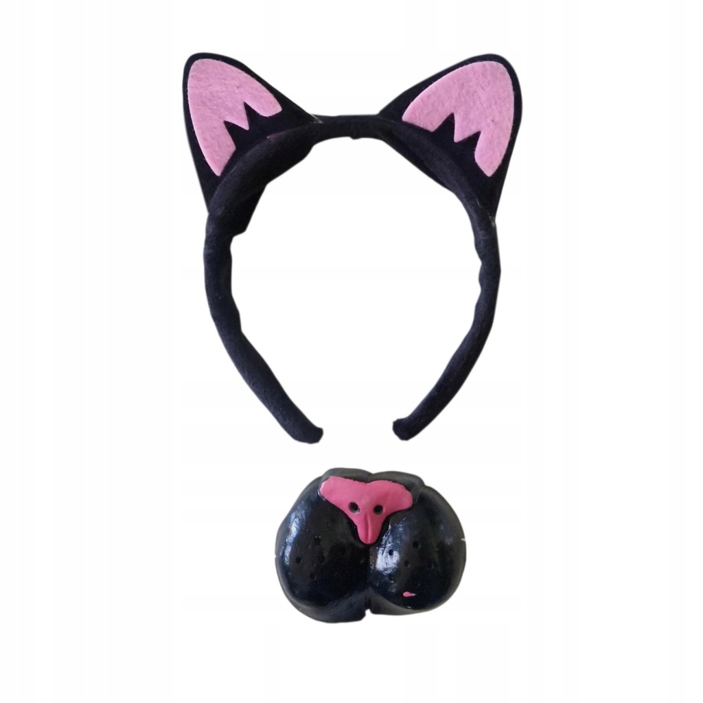 śliczne kocie uszy, miękka pluszowa opaska na głowę plus nos na gumce