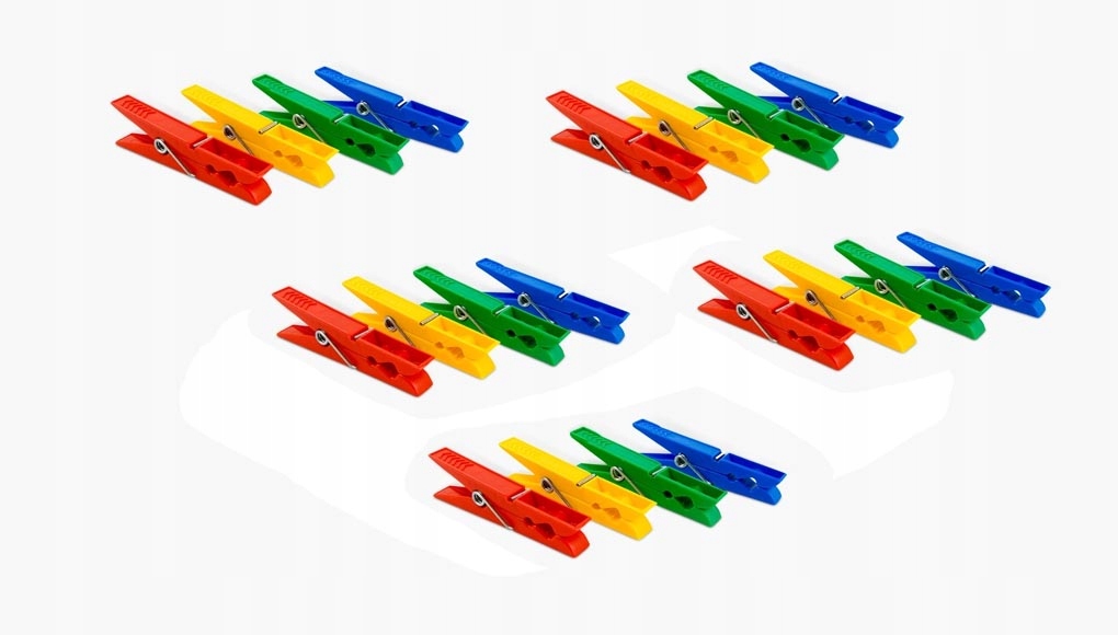 komplet kolorowych spinaczy, wykonanych z tworzywa sztucznego i