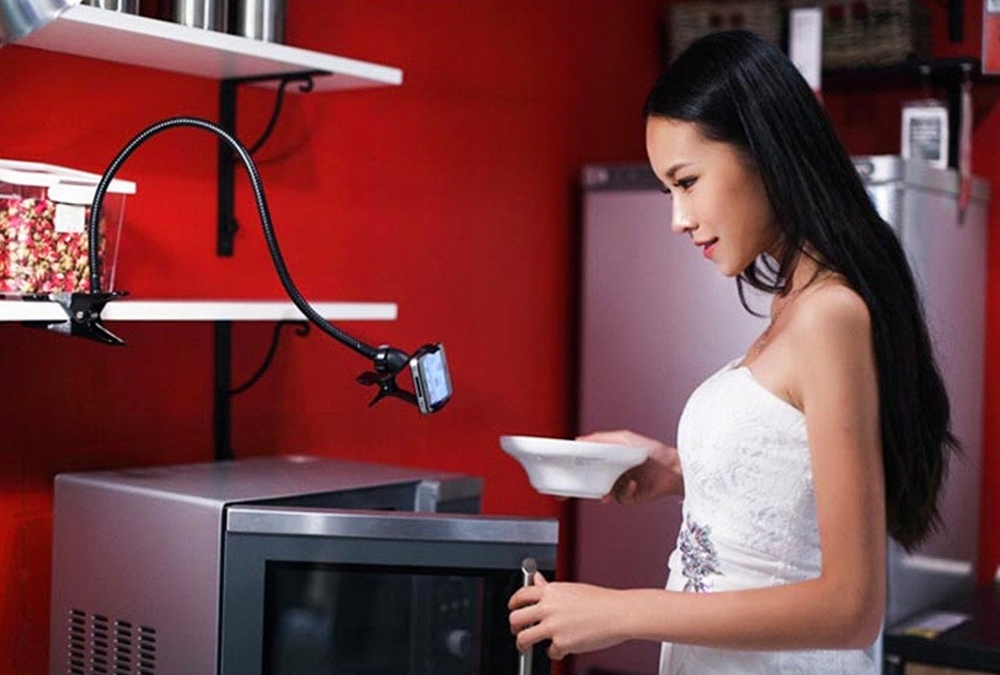 - REGULACJA POŁOŻENIA – uchwyt jest elastyczny i giętki; można go dowolnie wyginać i ustawiać zgodnie z indywidualnymi potrzebami.